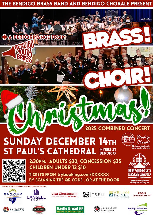 Once again, the chorale is joining with Bendigo Brass Band for our Christmas Concert.